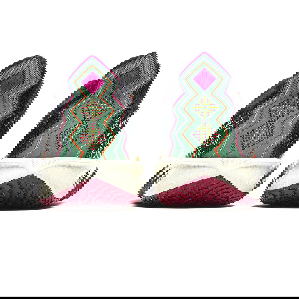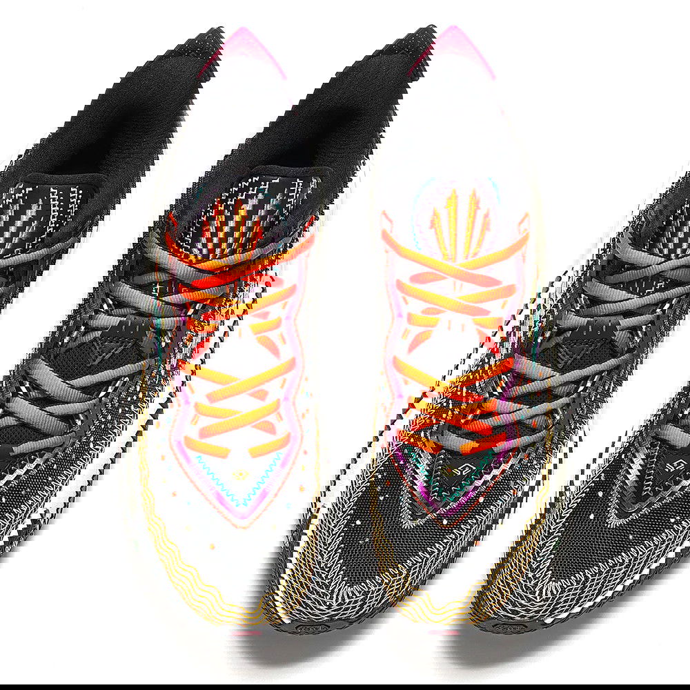 The "Solar Return" colorway takes inspiration from the solar spectrum, deconstructing sunlight into a vibrant array of colors across the shoe. Diese Farben spiegeln die Fülle aller Lebenserfahrungen und die Energie wider, die Kyrie ins Spiel bringt.