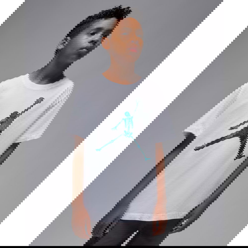 Dieses Baumwoll-T-Shirt interpretiert den Jumpman neu und präsentiert sich mit Standard-Schnitt, kurzen Ärmeln und einem Rundhalsausschnitt ohne Etikett – bequem und lässig zugleich. Kombiniere es mit einem beliebigen Jordan-Unterteil für einen Total Look, der deine sneakers perfekt zur Geltung bringt.