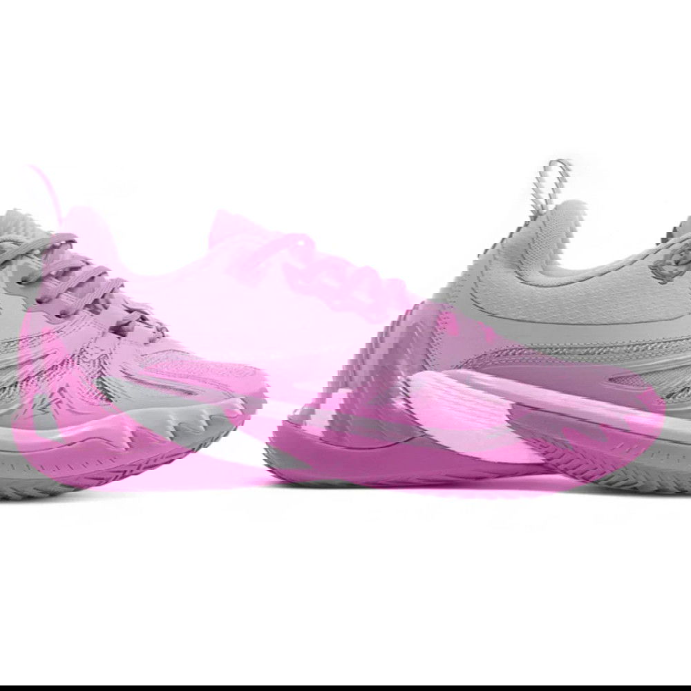 La parte superior de tejido, combinada con piel sintética, aporta transpirabilidad, ligereza y estructura. En la planta del pie, la suela exterior de goma garantiza un agarre fiable, ideal para aceleraciones bruscas y frenadas controladas, incluso en las fases más intensas.