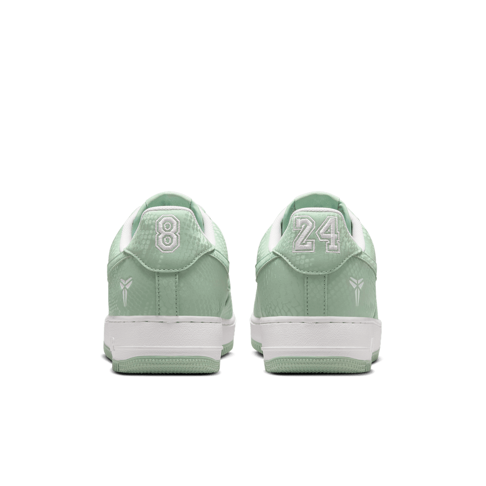 Cette AF1 en édition spéciale est imprégnée de l'ADN du Mamba. Preuve en est l'imprimé intégral effet peau de serpent, qui apporte une touche caractéristique à ce classique intemporel. Les inscriptions « 8 » et « 24 » brodées sur le talon font référence aux anciens numéros de maillot de Kobe. Les logos Sheath sur la languette et l'extérieur du talon ajoutent la touche signature. Et avec son deubré spécial « Mamba Forever » sur les lacets, cette Kobe AF1 perpétue la tradition.