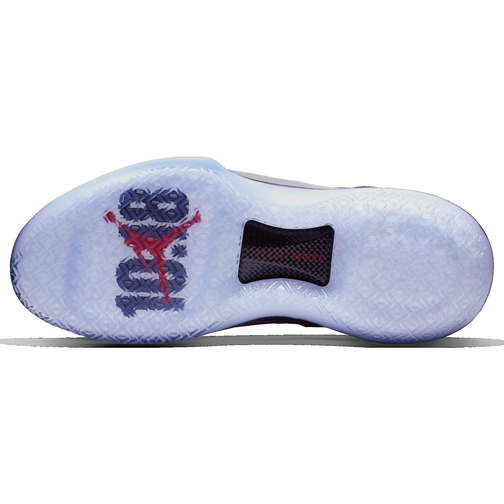 Avec l’arrivée du React on pouvait se poser la question si Jordan Brand allait prendre la décision d’intégrer cette nouvelle technologie à sa basket reine. Et bien ce n’est pas le cas, puisque le Flight Speed est fidèle au poste. Rappelons que le Flight Speed est composé de poches Zoom situées à l’avant et à l’arrière du pied, et que celles-ci sont compressées par une Flight Plate afin d’améliorer le retour en énergie et le dynamisme de la paire. La semelle a été revue et ce n’est pas plus mal puisque c’était le seul bémol la XXX1. Les chevrons présents sous la semelle ont été pensés pour répondre à toutes les sortes de déplacements sur le terrain. Une plaque en carbone a également été insérée au milieu de la semelle.