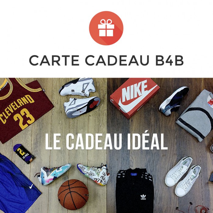 On entend certains d’entre vous au fond dire « Oui mais c’est difficile de choisir pour quelqu’un d’autre ! ». Rassurez-vous, nous avons la solution avec la Carte Cadeau B4B ! Il vous suffit juste de choisir le montant et de cocher si celle-ci vous est destinée ou pour quelqu’un d’autre. L’heureux possesseur aura 1 an pour trouver son bonheur, et avec toutes les nouveautés Sneakers et Basketball qui arrivent chaque semaine, aucun doute qu’il y parvienne.