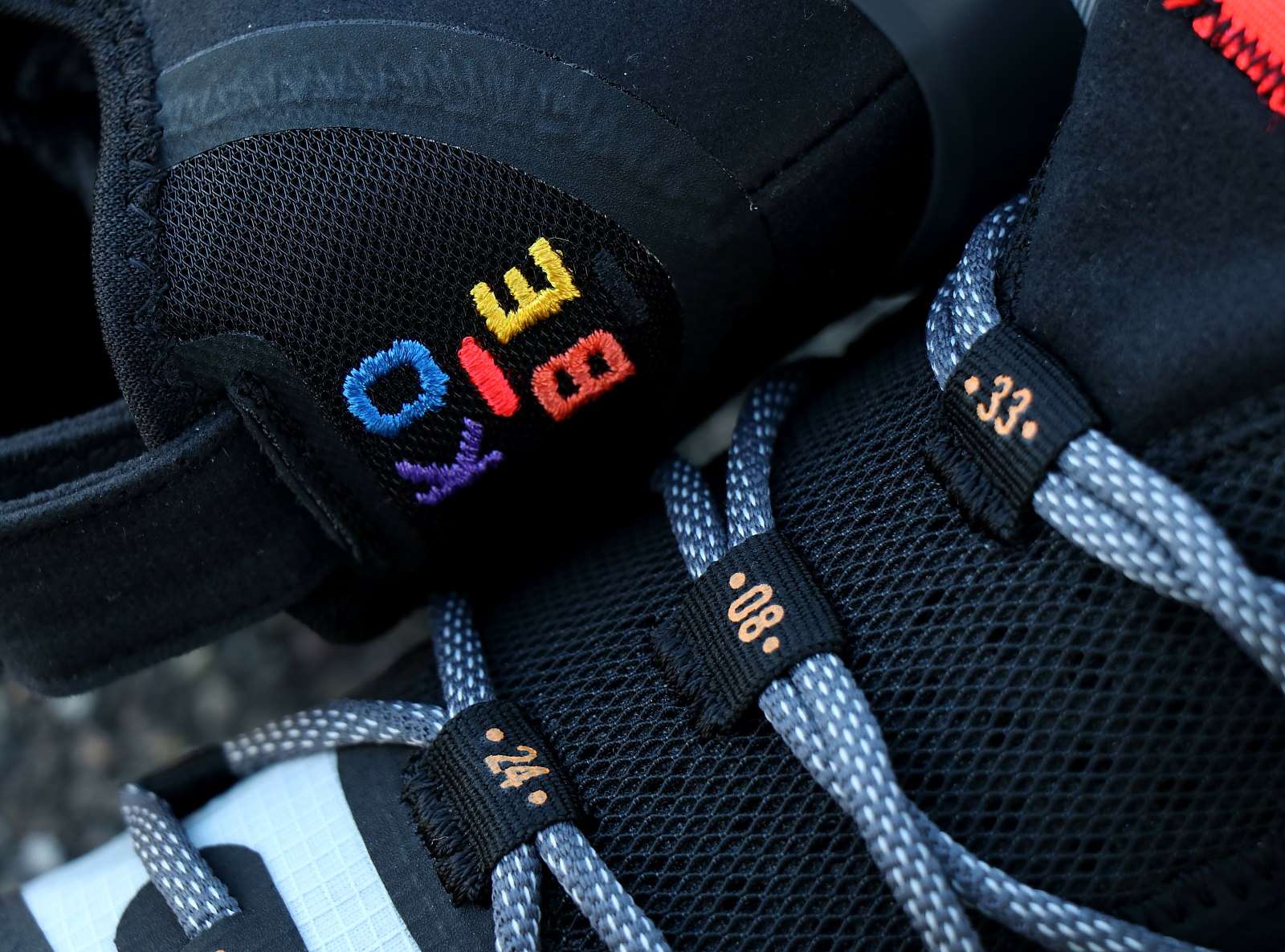 Une chaussure de basketball qui arrive sur le devant de la scène dans un premier coloris « Black Multicolor ». L’ensemble est majoritairement noir tandis que les détails apparaissent en rouge, gris et doré. Parmi ceux-ci, on retrouve sur la chaussure droite, plusieurs chiffres formant la date de naissance de Kobe Bryant, et sur la basket gauche, les numéros portés par Kobe Bryant à Lower Merion School et aux Lakers ! Une inscription KOBE multicolore est visible au talon, accompagnée par le logo « Sheath » (qui pour rappel rend hommage aux anciennes épées samouraïs), inséré à plusieurs endroits comme la semelle de propreté, la languette et les panneaux intérieurs.