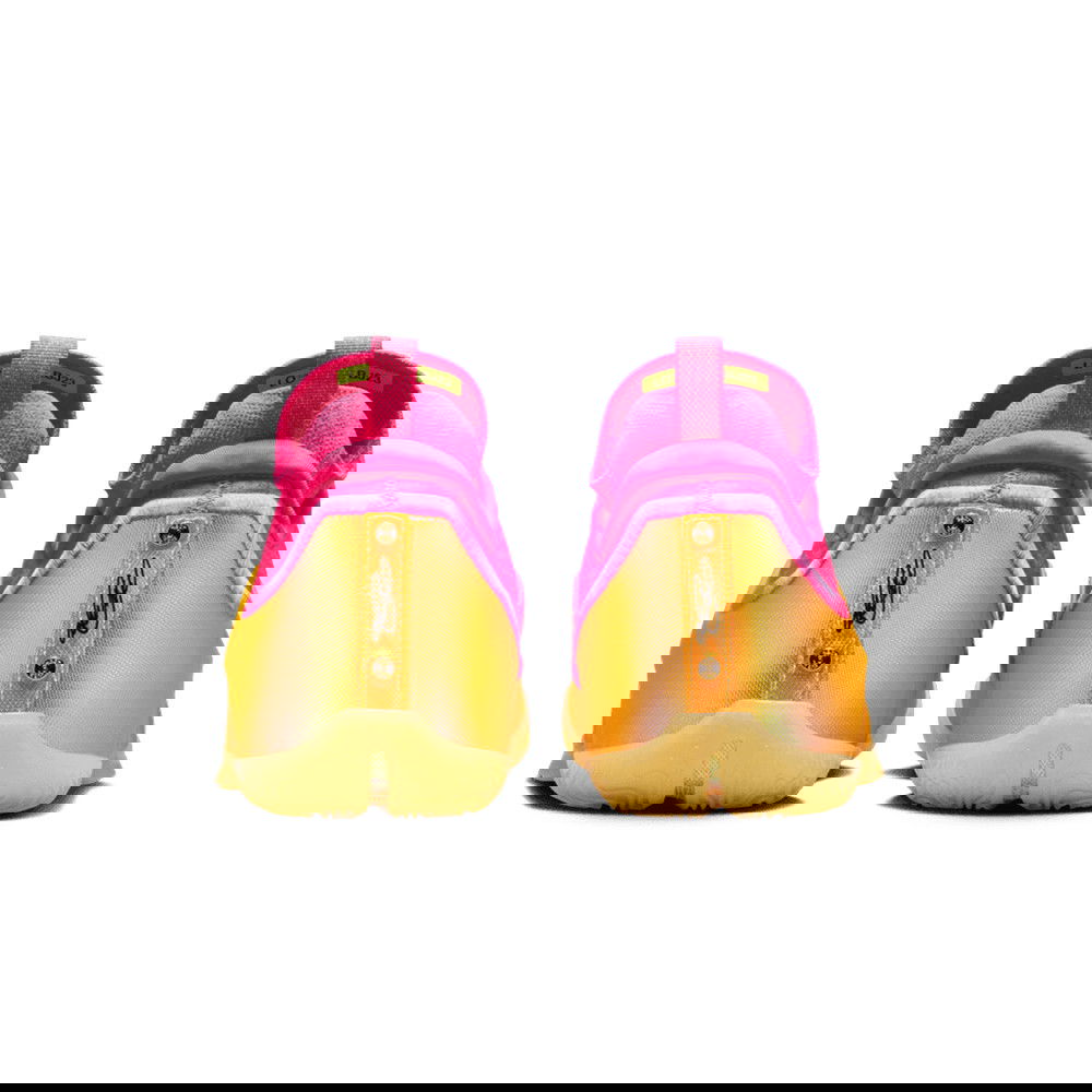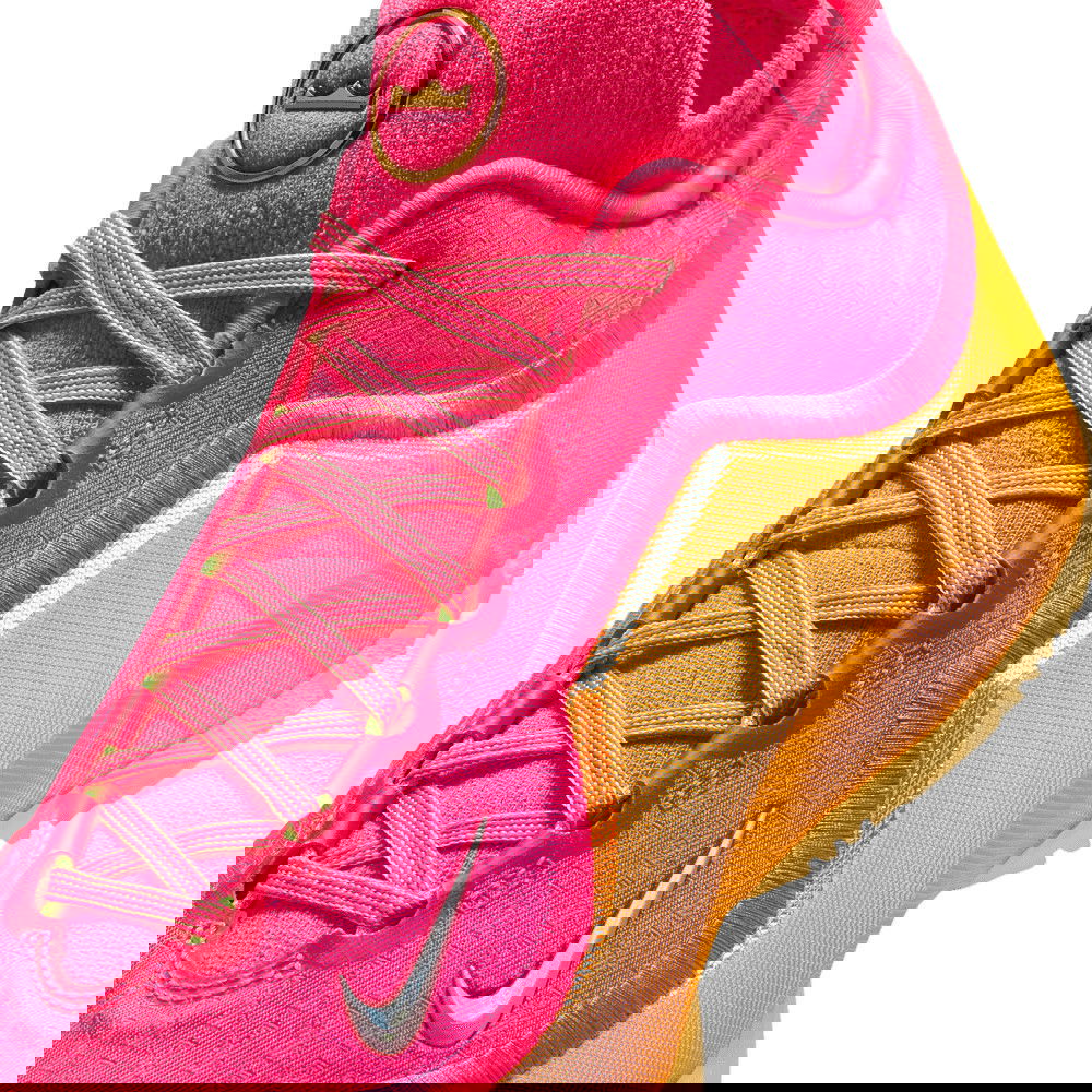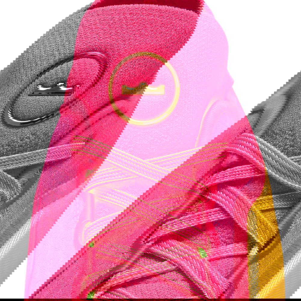 « The Decision » a marqué un moment déterminant dans la carrière de LeBron, le menant finalement vers l’objectif ultime — un titre. Les touches dorées présentes sur le modèle évoquent ce trophée conquis. Le motif de l’empeigne présente des couronnes divisées en deux, symbole d’un Roi indécis. Les tons roses font subtilement référence à la chemise à carreaux rouge et blanc que LeBron portait lorsqu’il a annoncé son intention d’emmener son talent à South Beach. Nous avons encore élevé les enjeux en supprimant la languette et en intégrant une empeigne Flyknit sur toute la longueur.