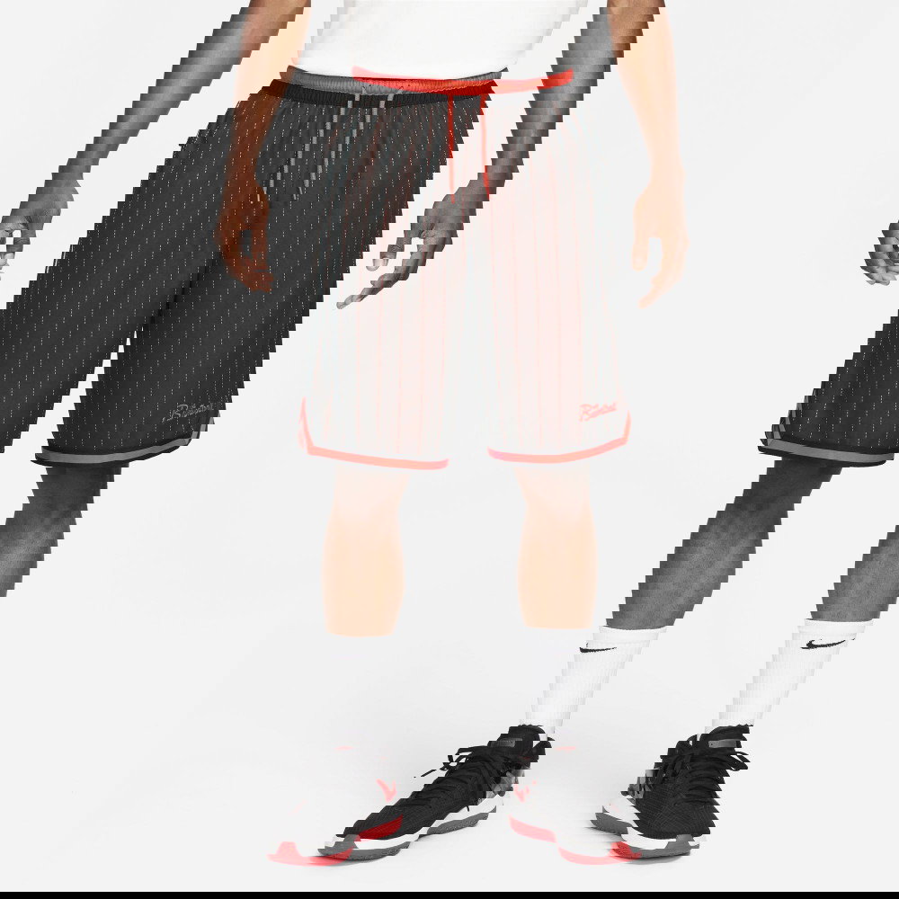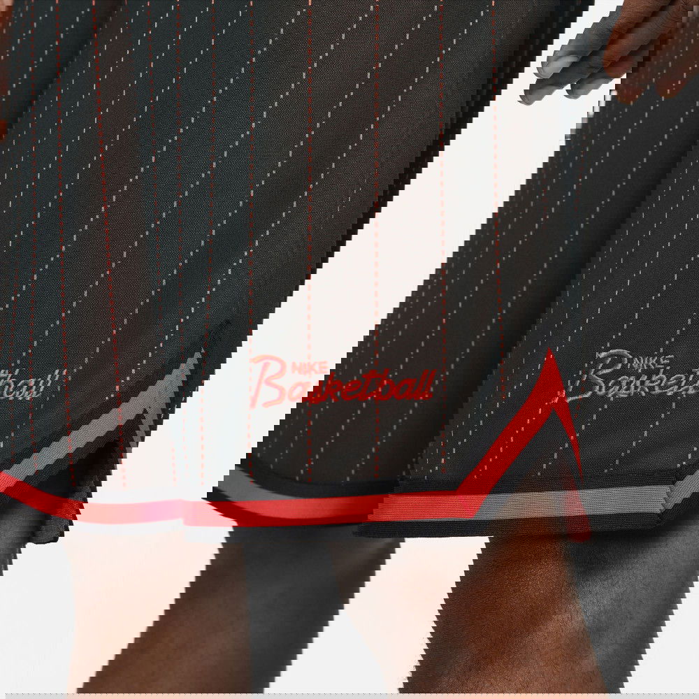 Geef alles, zowel op als buiten het veld, met de Nike Dri-FIT DNA shorts. Gemaakt van ademend, lichtgewicht materiaal met een binnenbeenlengte van 25 cm (10 inch) die tot de knie reikt, hebben ze een relaxte, losse pasvorm met vochtafvoerende technologie – essentieel voor basketbal. De seizoenskleuren en -graphics zijn geïnspireerd op fanartikelen uit de jaren '80 en '90.