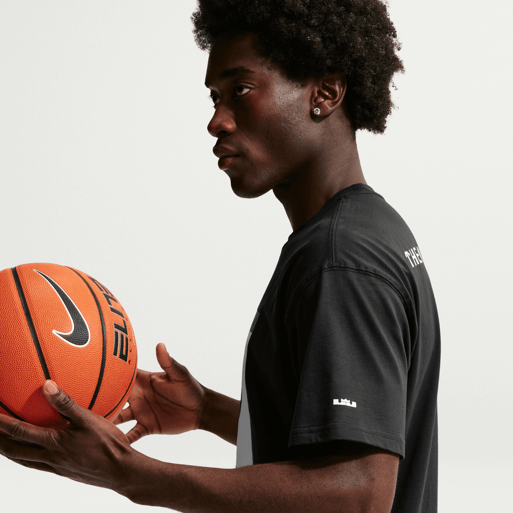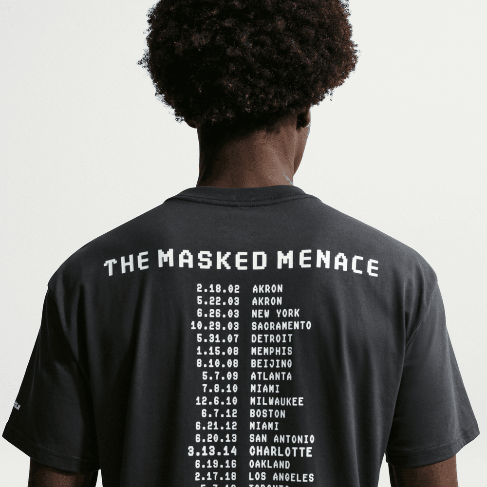 O LeBron mascarado era uma fera diferente, estabelecendo um recorde da franquia de pontos num jogo que ainda hoje se mantém. Esta camiseta confortável retrata a nova e ousada personalidade do Bron, com ombros caídos, mangas mais compridas e um corte folgado no corpo e nas ancas, para um visual descontraído e casual. O tecido de algodão de gramagem média é macio e apresenta uma ligeira queda.