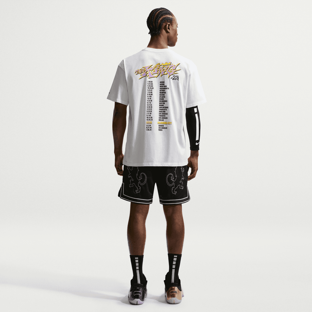 O recorde de todos os tempos é o Santo Graal absoluto. Inquebrável. Inatingível. Exceto quando o nome é LeBron. A 7 de fevereiro de 2023, LeBron marcou um fadeaway jumper, somando o seu 38 388.º ponto e tornando-se o novo dos marcadores da NBA. Esta t-shirt Max90 celebra este momento marcante, mesmo que não tenha sido um fim, mas sim um marco, com ainda muitos feitos por vir.