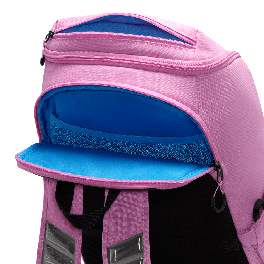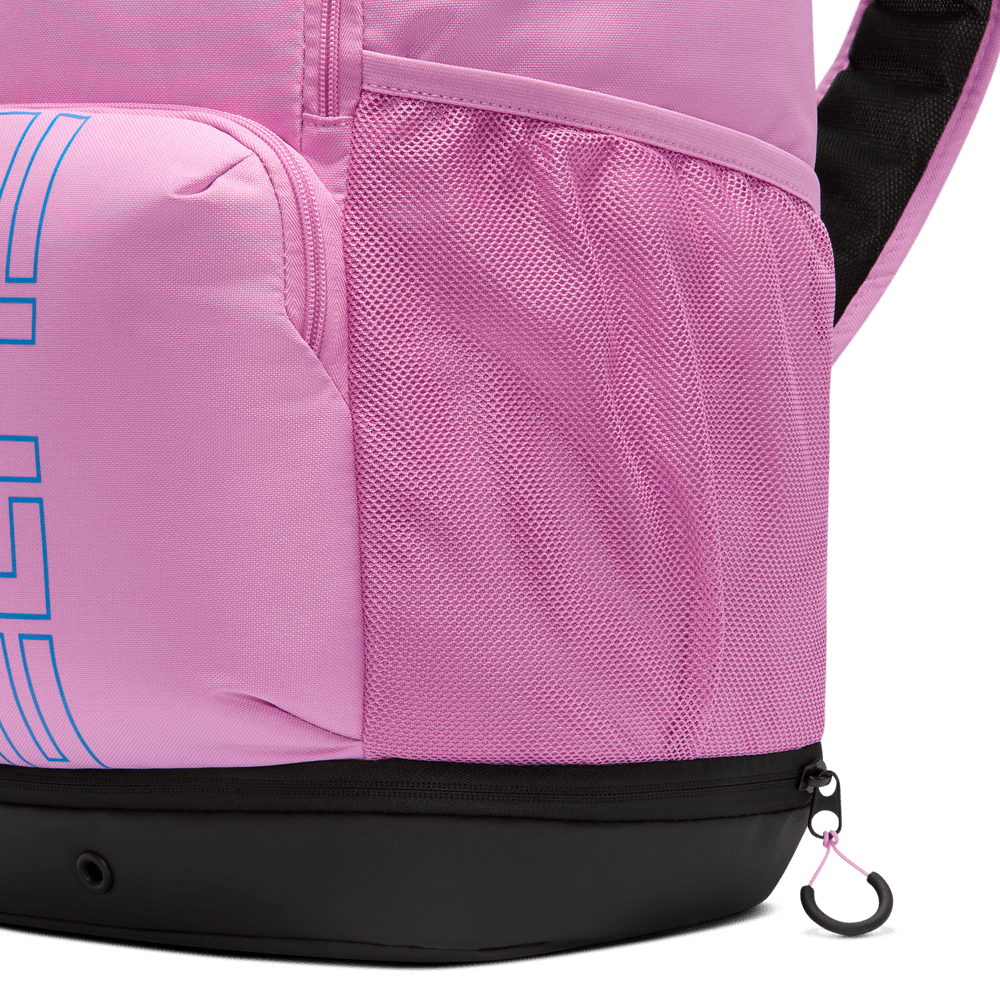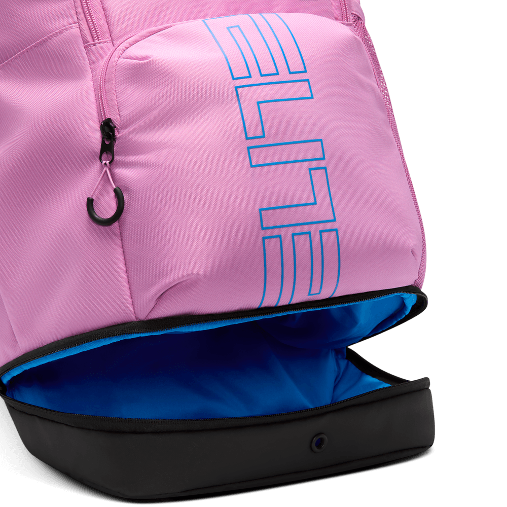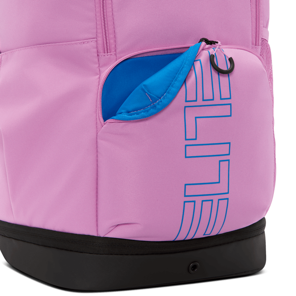 A mochila Varsity Elite permite-te transportar tudo o que precisas para jogar basquetebol. O grande compartimento principal tem espaço para uma bola de basquetebol de tamanho padrão. Podes guardar os teus objetos pequenos no bolso frontal de fácil acesso. E o bolso inferior é prático para separar as tuas roupas ou sapatos sujos. Uma alça permite prendê-la à sua bagagem quando viaja para jogos fora de casa.